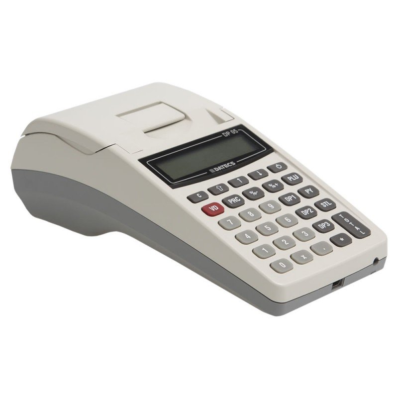 Casa de marcat portabila Datecs DP05, fara display pentru client. Singura casa de marcat ce poate fi dotata optional cu cititor coduri incorporat. Nu exista port dedicat pentru scanner (se comanda casa de marcat cu cititor coduri incorporat). Acumulator inclus. Modul Bluetooth optional.