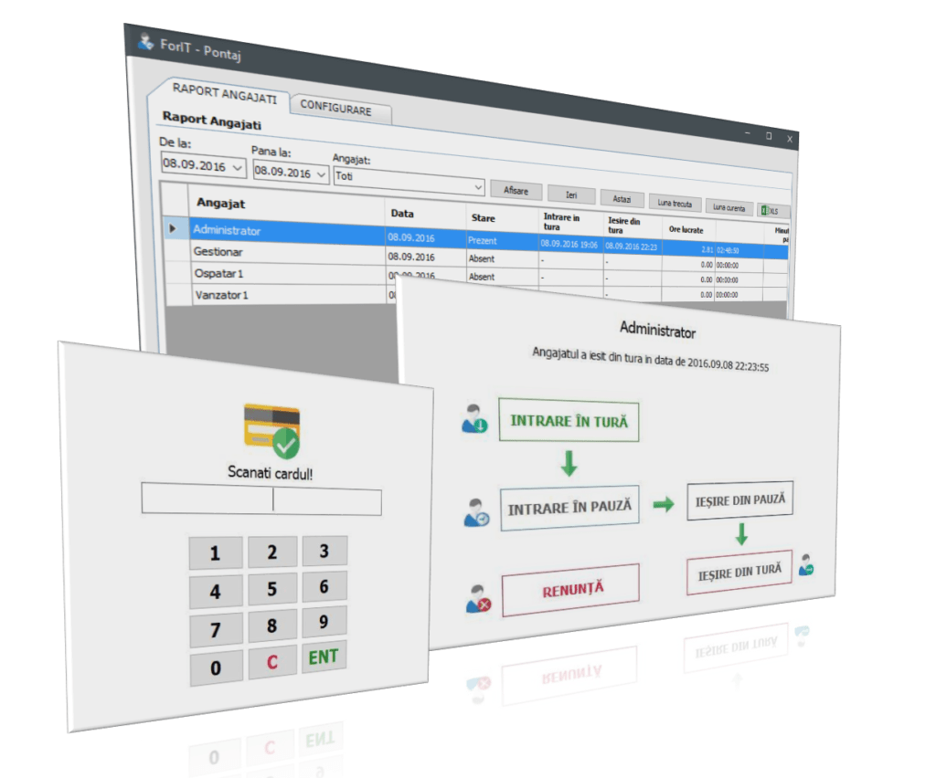 ForIT – PontajForIT – Pontaj este o aplicatie de pontaj pentru angajati. Aceasta aplicatie se integreaza in aplicatia ForIT – Forms. Facilitati: