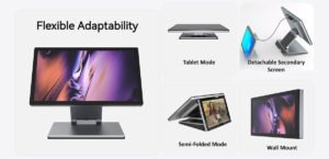 Sistem POS All in One M3, este un terminal POS de ultimă generație, proiectat cu un design pliabil, ultra-subțire și modern, ideal pentru spațiile comerciale care pun accent pe estetică și eficiență.