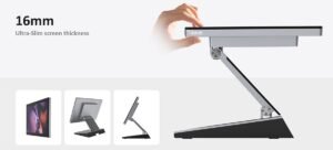 Terminalul POS impresionează printr-un ecran ultra-subțire de numai 16 mm, oferind un aspect elegant și modern, perfect adaptat cerințelor spațiilor comerciale premium. Dimensiunile reduse contribuie la un design aerisit și minimalist, fără a compromite performanța sau durabilitatea. Ideal pentru locații unde estetica și economia de spațiu contează.